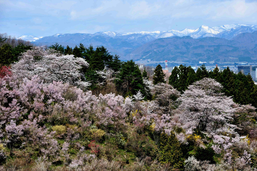 花見山展望台から見た吾妻連峰と福島市。午前中がおすすめです。 |