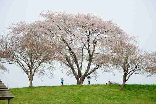 風車があり、桜やチューリップ、夏には花火大会がある。 |