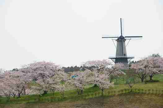 高さ21mのオランダ風車がシンボルの公園。風車は中を見学することもできる。園内には11mの長さのローラーすべり台などの遊具もあり、春にはチューリップや桜といった花々が鮮やかに咲く。 |